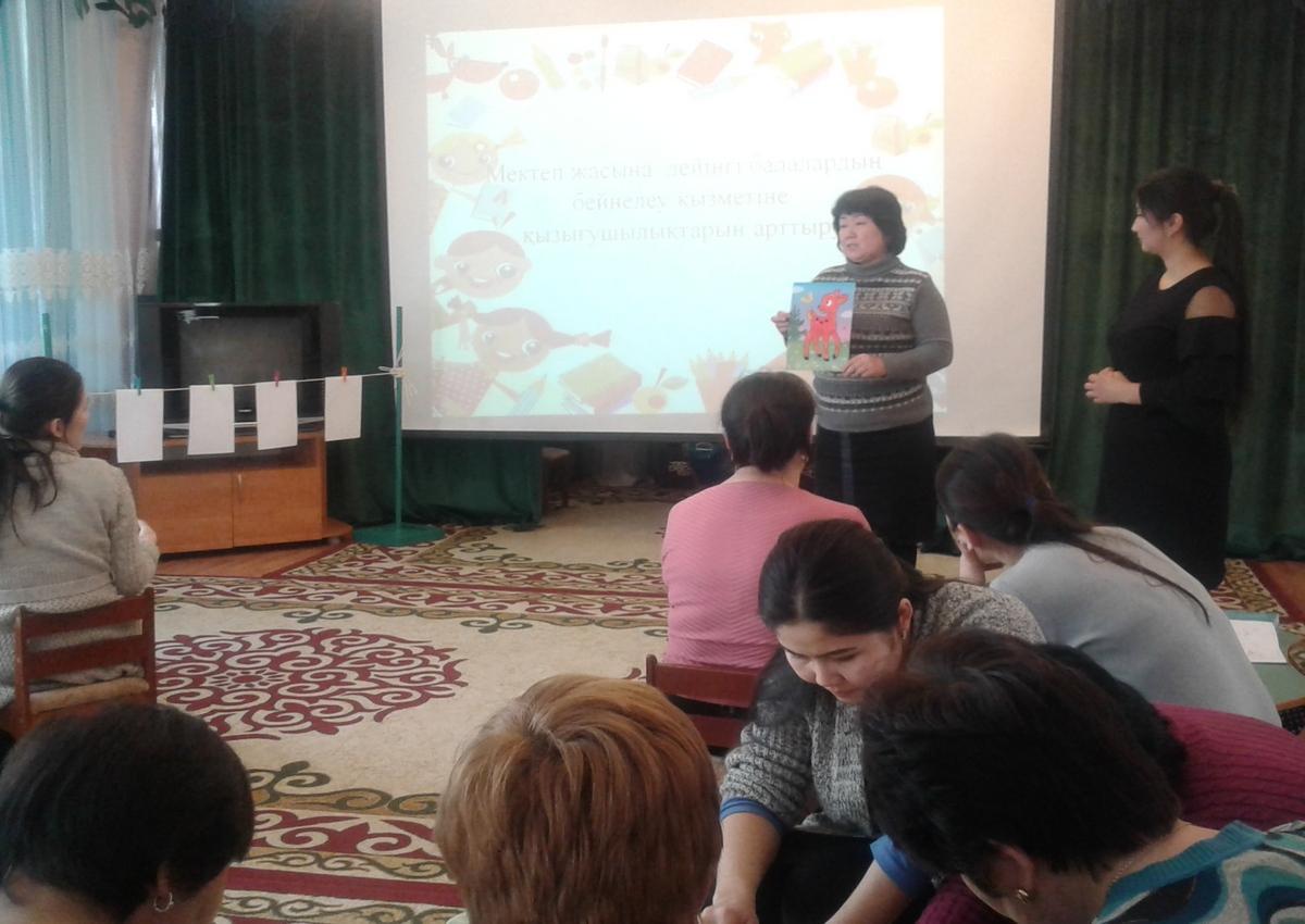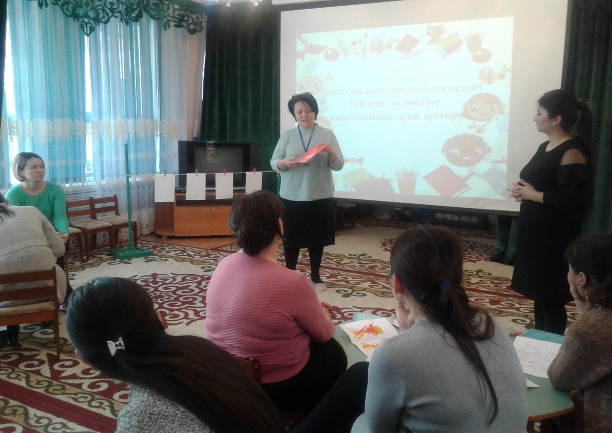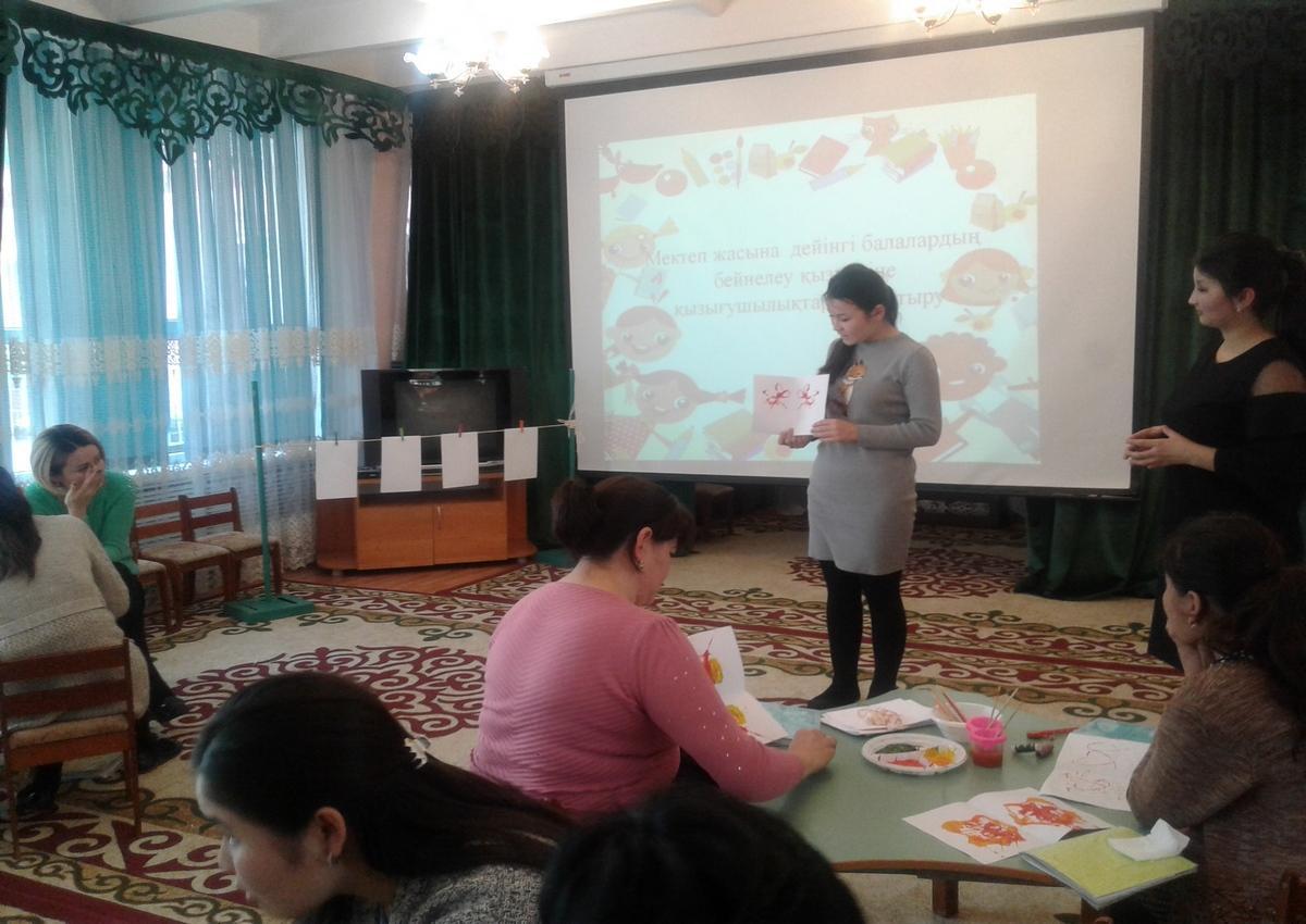 "Мектеп жасына дейінгі балалардың бейнелеу қызметіне қызығушылықтарын арттыру" тақырыбындағы семинар. жауаптылар: Методист-Ү. Томпай Тәрбиешілер: А. Толепова және Л. Нокенова